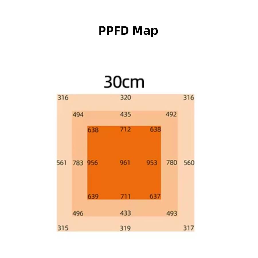 Elke van de drie lichtbalken bevat 434 zorgvuldig geplaatste diodes, in totaal 1302, wat zorgt voor een perfecte balans tussen lichtintensiteit en dekking over het volledige kweekoppervlak. In tegenstelling tot goedkopere alternatieven die vooral in het midden veel licht geven en aan de randen tekortschieten, zorgt het doordachte ontwerp van de Titan Start 300 voor een gelijkmatige lichtverdeling over een kweekruimte van 120 cm bij 60 cm.